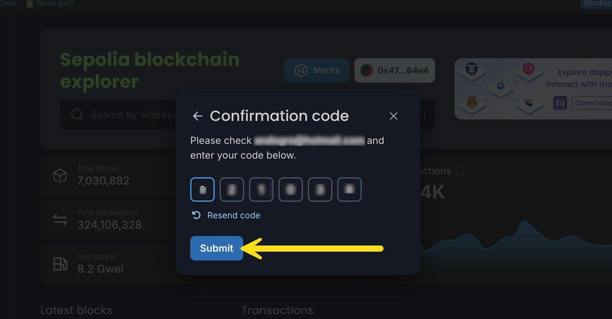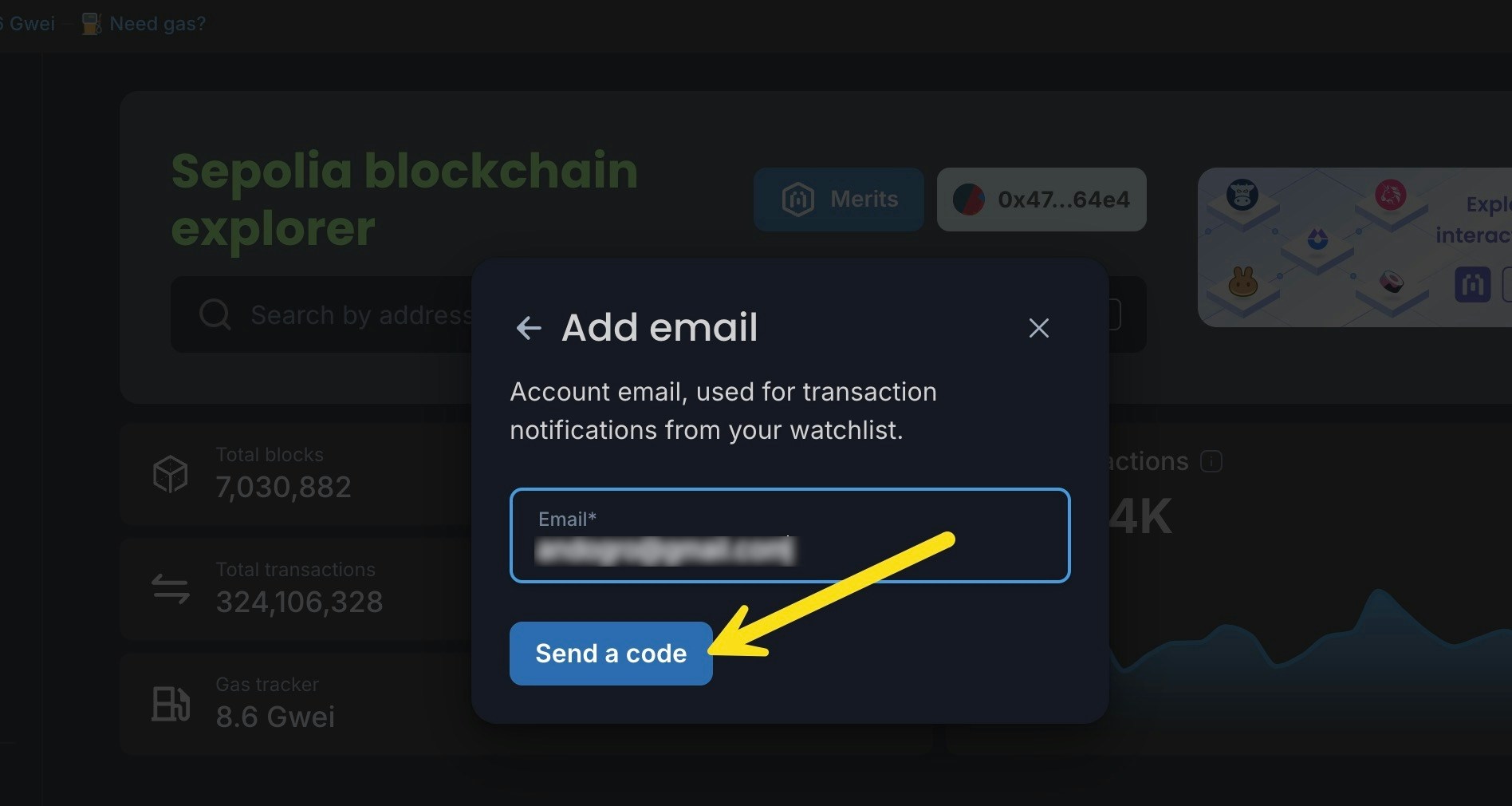 If you already have a Blockscout account, you can still use a referral code to sign up for the Merits program. Login to your Blockscout account and paste in the referral link or press the Merits button to start. Follow the process above starting with step 5.